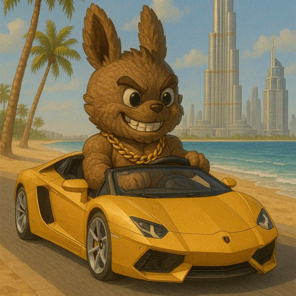 Join our X community to stay updated on blessings, pumps, raids and every move of the plush desert menace.